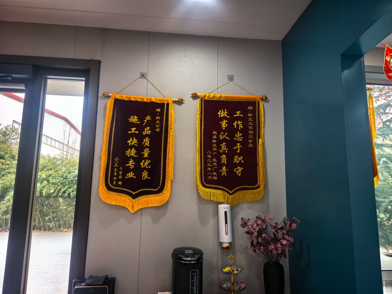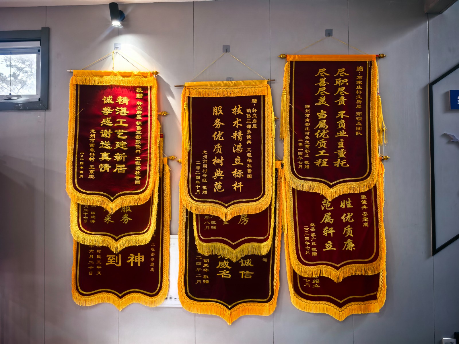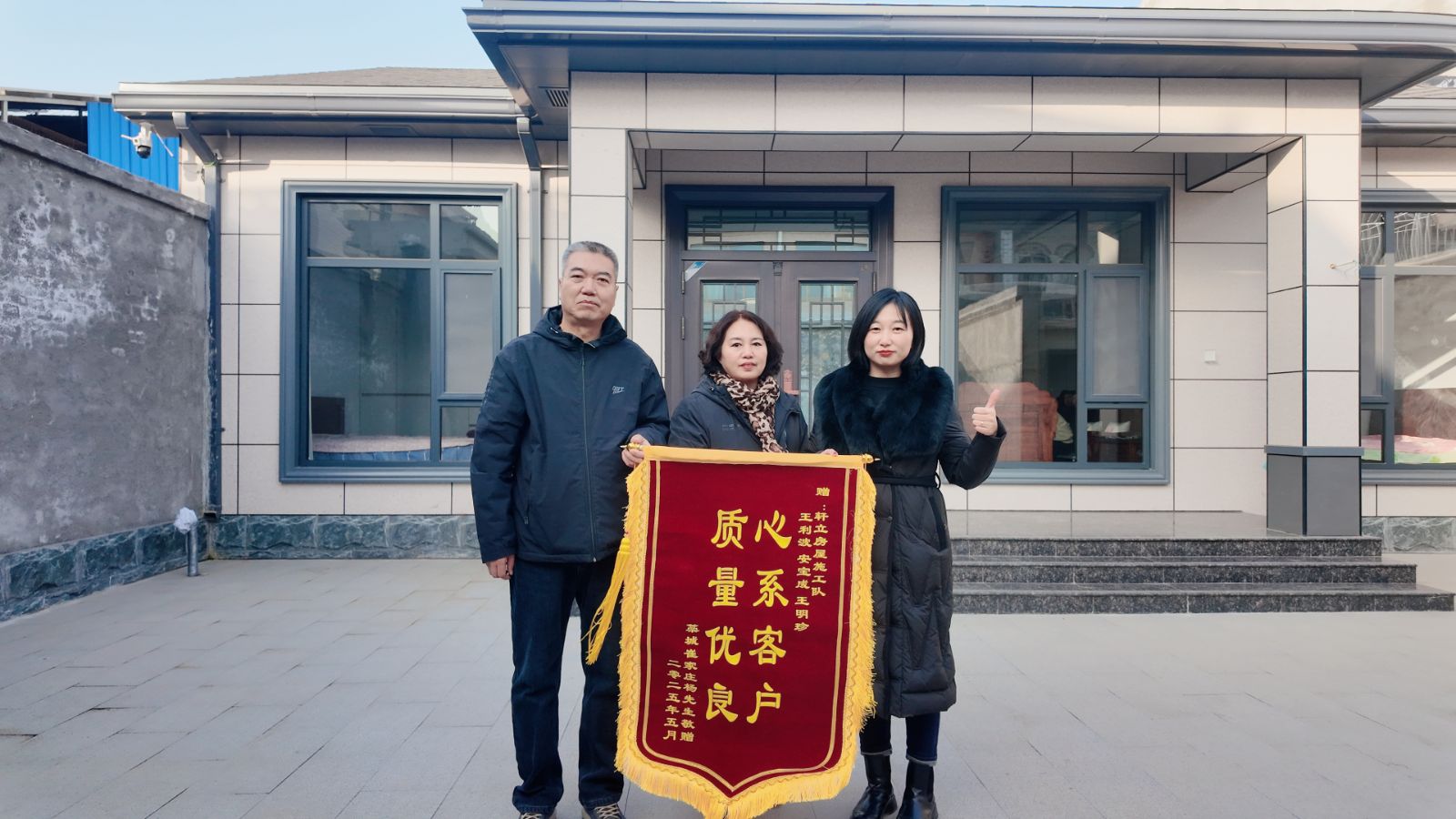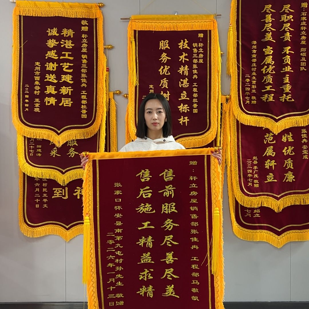 藁城楊玉平先生送來的錦旗,特別致謝了業(yè)務經(jīng)理王明珍、項目經(jīng)理安寶成及施工班組。這份全景式的致謝,印證了軒立房屋從銷售到交付的全流程專業(yè)服務。
