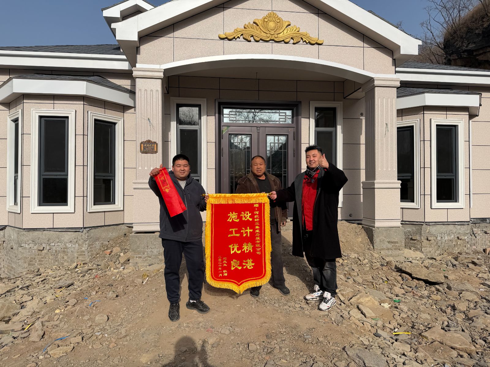 錦旗的背后: 這份“贊不絕口”,是對軒立房屋從產(chǎn)品體系、施工質(zhì)量到整體交付能力直接、有力的肯定。這面錦旗可以證明,我們承諾的“專業(yè)建房”,經(jīng)得起業(yè)主嚴格的審視。
